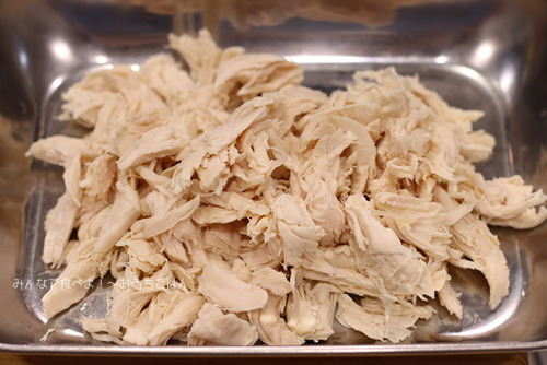 1.ささみは熱湯で茹でて冷水にとり冷ます。
