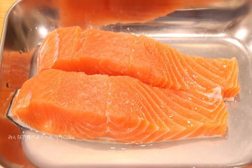 下準備:生鮭は骨を取り料理酒を振りかけておく