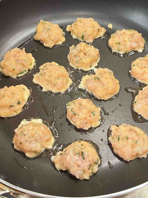 2.フライパンに米油を熱し、大さじ1ずつタネを落として
